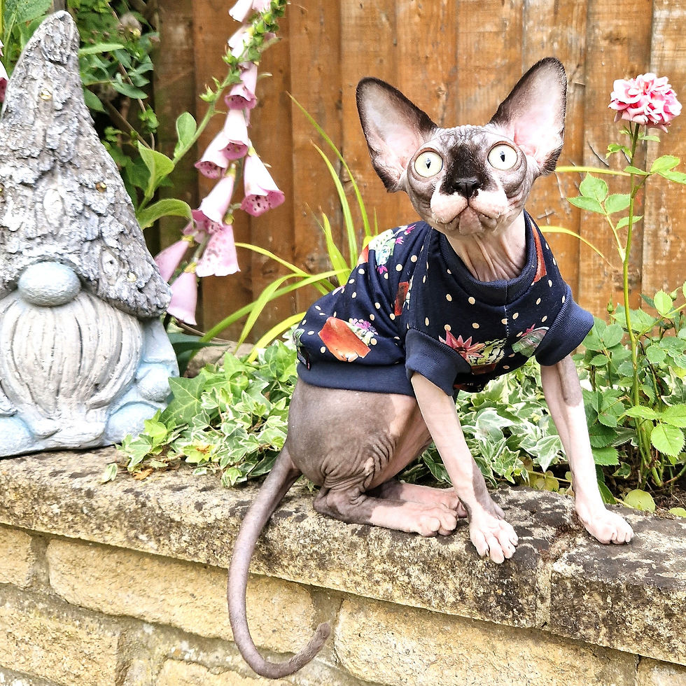 This environmentally friendly range of cat clothing is made from new fabrics/scraps/remnants that were intended for the bin. Limited numbers of each designs. All fabrics used for reclaimed tops are comfortable and nice to the skin. We choose to offer this collection as we take sustainability seriously and we care for our planet.