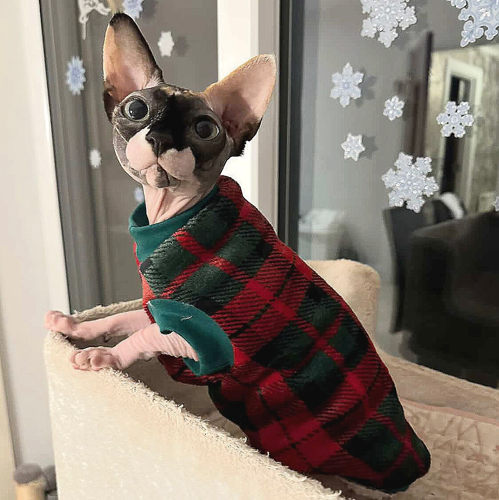 Double-sided Tartan and Sherpa Fleece - Sphynx Cat Top